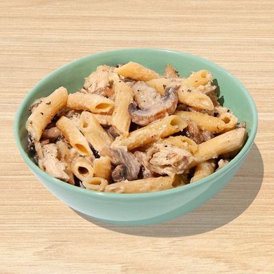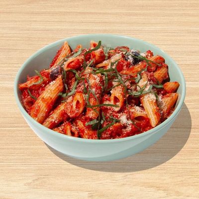 Beef tortellini cooked with olives and roasted capsicum in cream Napoli sauce