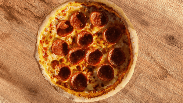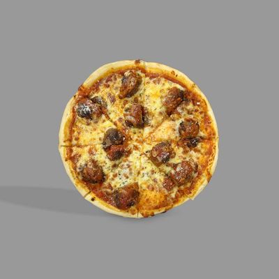 Tomato base, mozzarella, beef sausage, roasted capsicum, caramelised onion, olives, and chilli-flakes