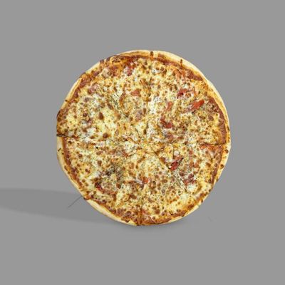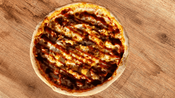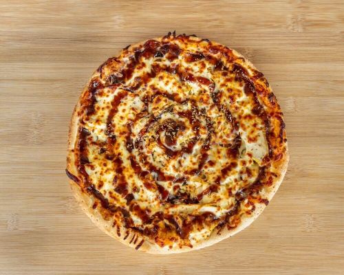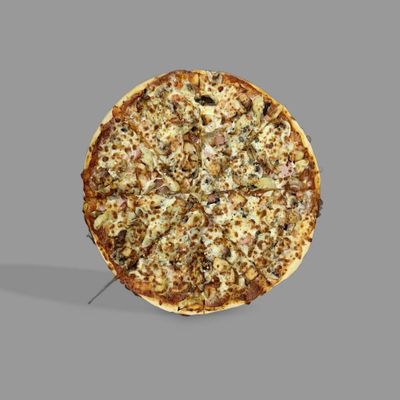 Tomato base, mozzarella, shredded ham, bacon, salami, chicken, and BBQ sauce