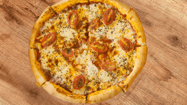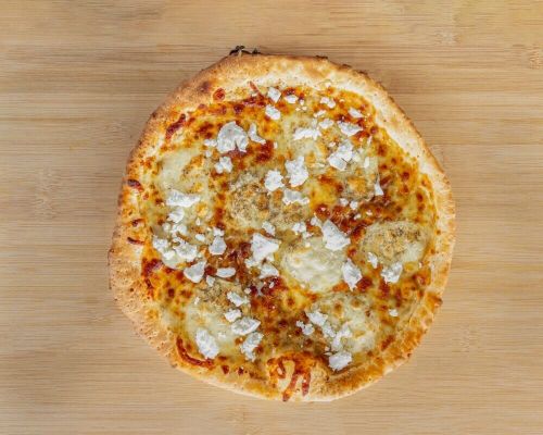 Garlic base, mozzarella, bocconcini, Parmesan, feta, and pepper