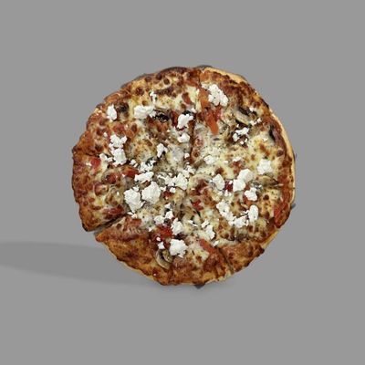 Tomato base, feta, mozzarella, salami, mushroom, roasted capsicum, caramelised onion, and herbs
